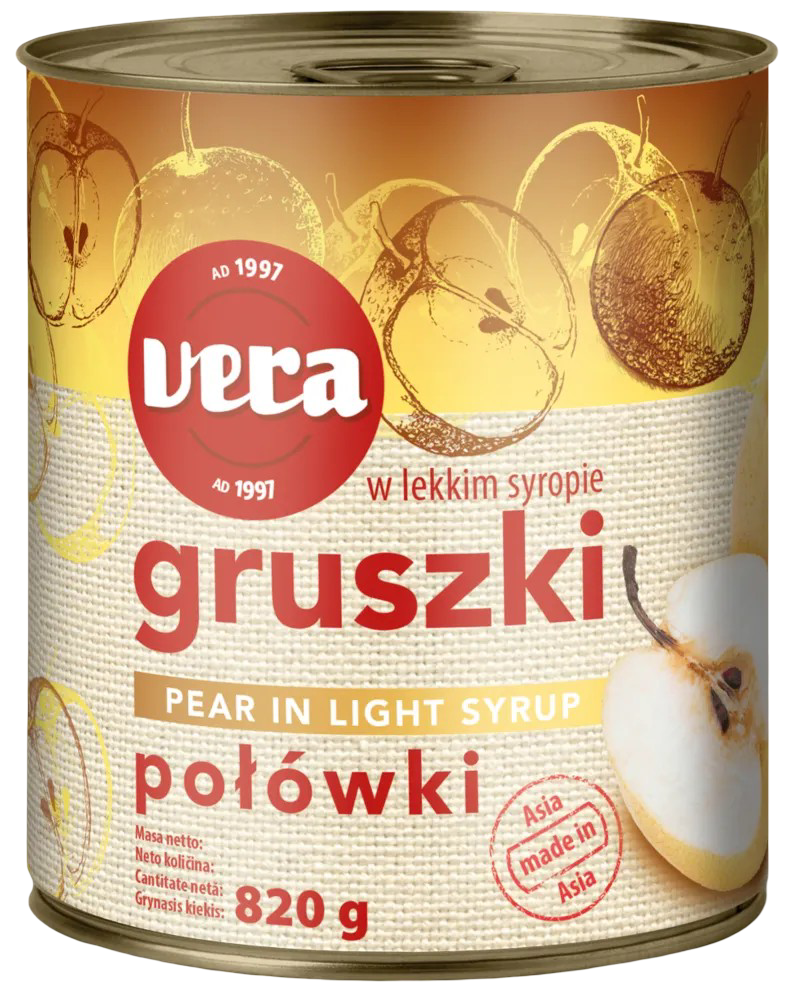 Gruszki połówki w syropie Vera 820/460g