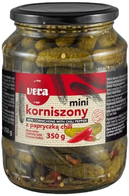 Korniszony mini z papryczką chili Vera 350/190g