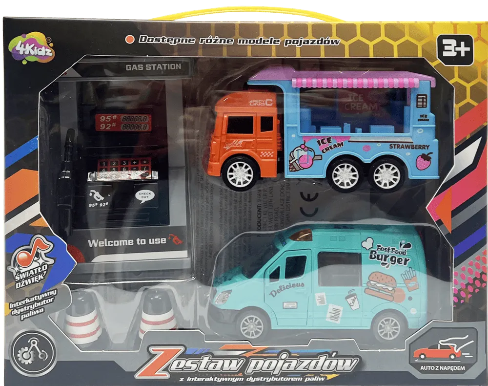 Zabawka zestaw pojazdów stacja paliw